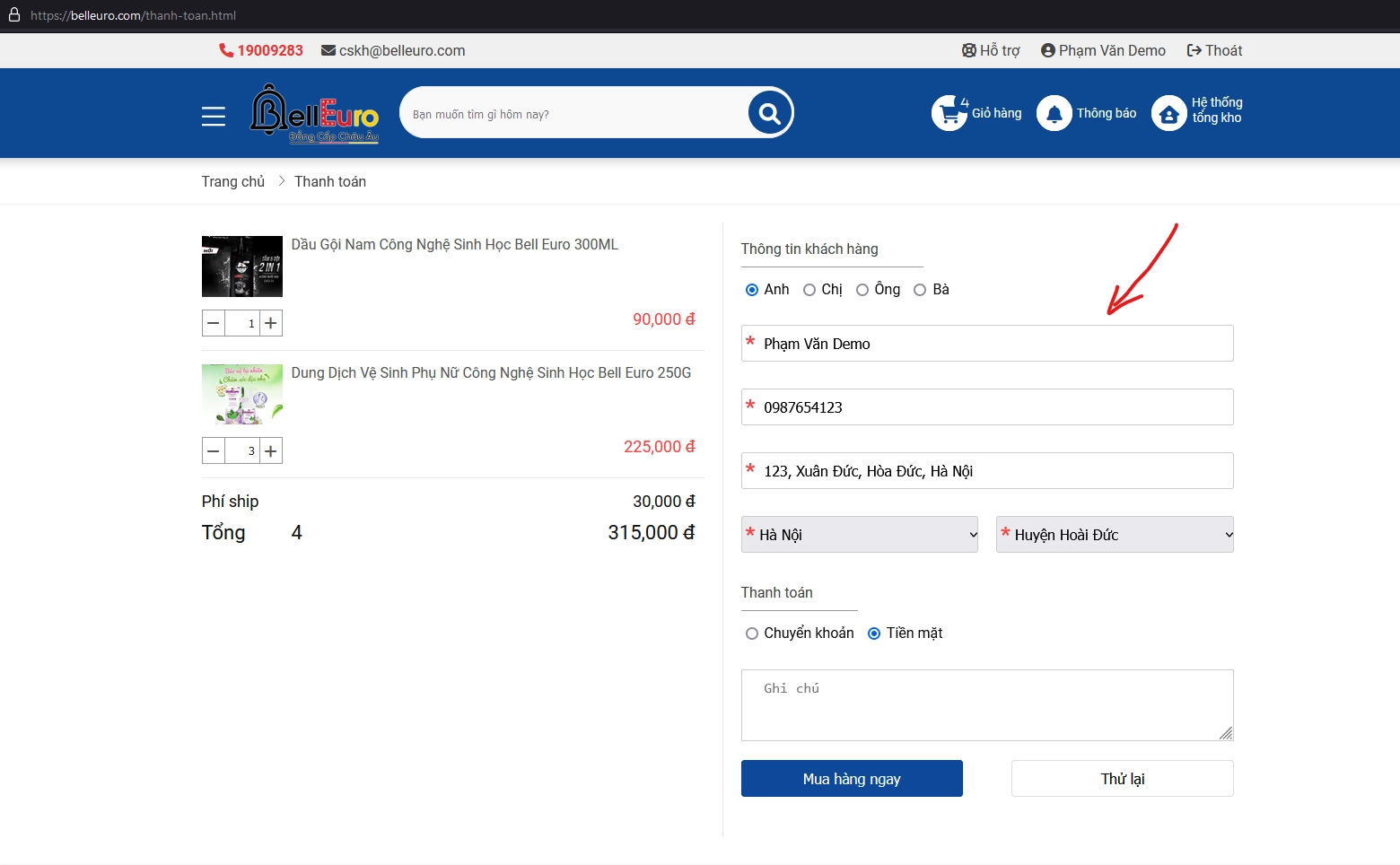 Click vào Mua hàng ngay để hoàn tất việc mua hàng