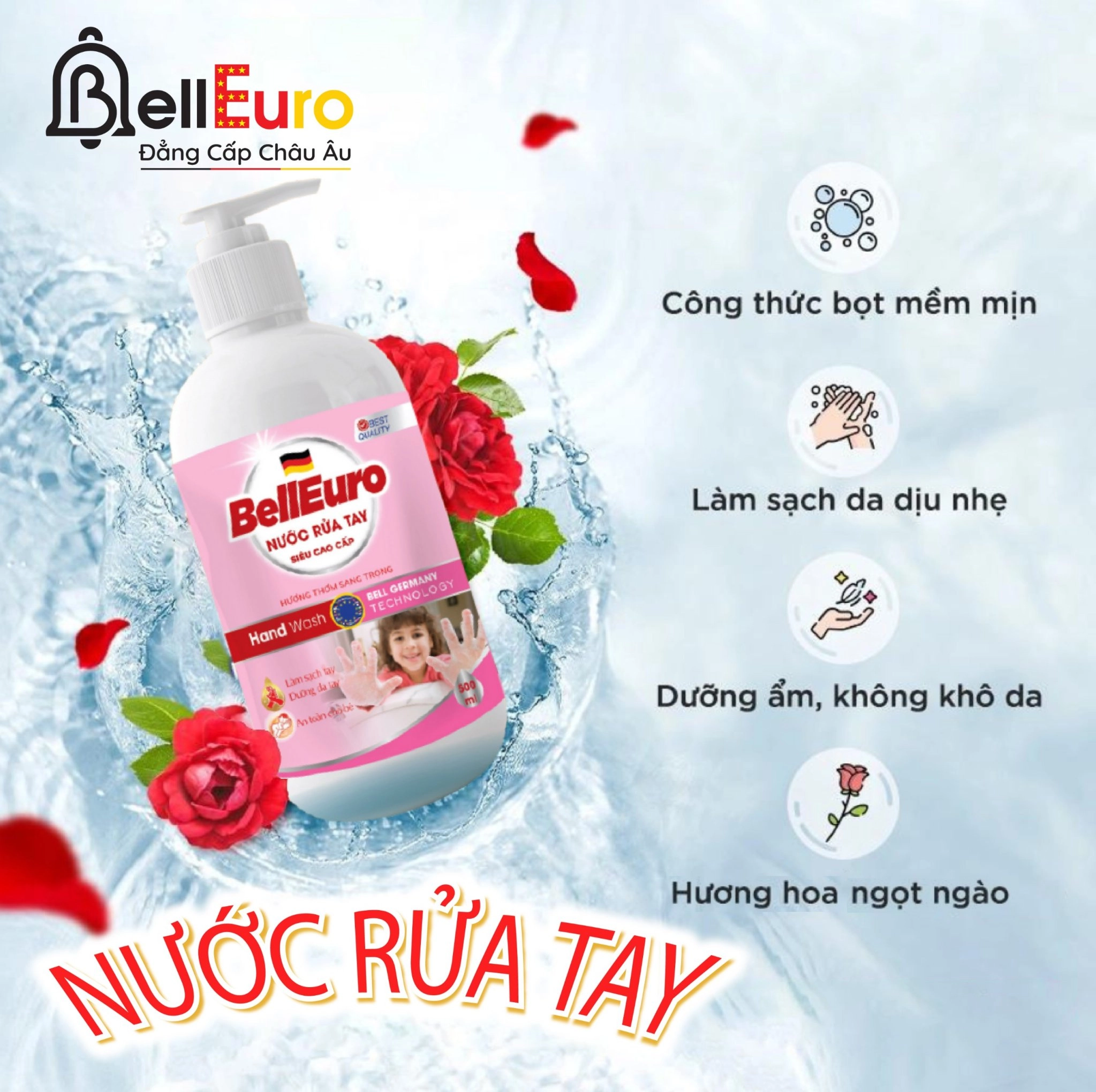 Khác với nước rửa tay thông thường sẽ làm da tay khô ráp, bong tróc, lão hoá thì nước rửa tay công nghệ sinh học Bell Euro có chứa thành phần propylene glycol thường được sử dụng trong mỹ phẩm, rất tốt trong vai trò cấp ẩm cho da và giải quyết tình trạng khô da và sạm da. Với các thành phần từ thiên nhiên, sản phẩm giúp da tay săn chắc, ngừa nếp nhăn hiệu quả, khôi phục lớp bề mặt da bị tổn thương, xử lý nếp nhăn, tình trạng da khô, nổi gân và các hiện tượng lão hóa. Nhờ ứng dụng công nghệ sinh học, sản phẩm hỗ trợ ngăn ngừa mất nước và kích thích sự tổng hợp các protein cấu tạo làm tăng mật độ lớp biểu bì trên da tay.